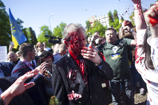 Setelah menyiram Duta Besar Rusia dan rombongan kedutaan Rusia di Polandia, para demostran pro-Ukraina juga meneriaki mereka sebagai pasukan fasis karena telah menyerang Ukraina dan mengibarkan bendera Ukraina sebagai bentuk protes kepada Rusia.