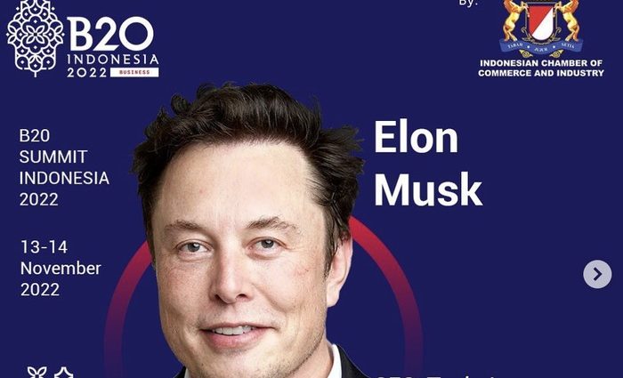 Kumpulan Berita – CEO Tesla sekaligus Twitter, yakni Elon Musk, dikabarkan akan hadir dalam acara B20 yang akan diselenggarakan di Bali pada tanggal 13 sampai 14 November 2022. Dalam acara yang merupakan selingan kegiatan dari G20 ini Elon Musk akan berpartisipasi sebagai salah satu pembicara.