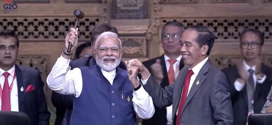 “Menandai berakhirnya presidensi Indonesia di G20, saya menyerahkan tampuk kepemimpinan (G20) kepada India selaku presidensi G20 berikutnya,” ujar Jokowi menambahkan.